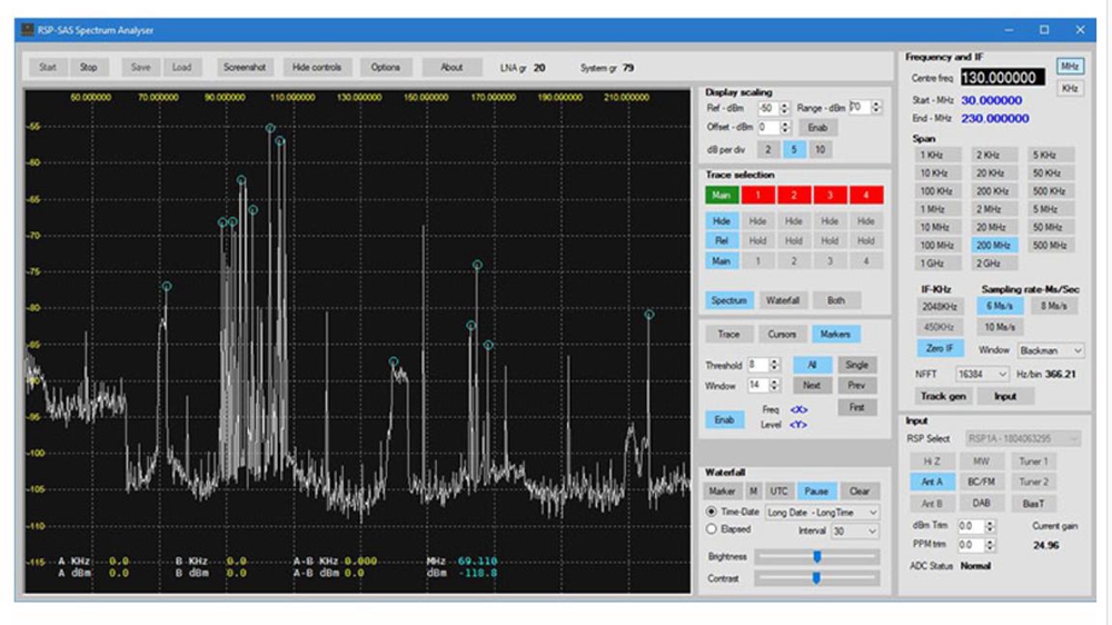 - 2 x SMA (50ohms) with software controlled antenna input interface (1kHz-2GHz)