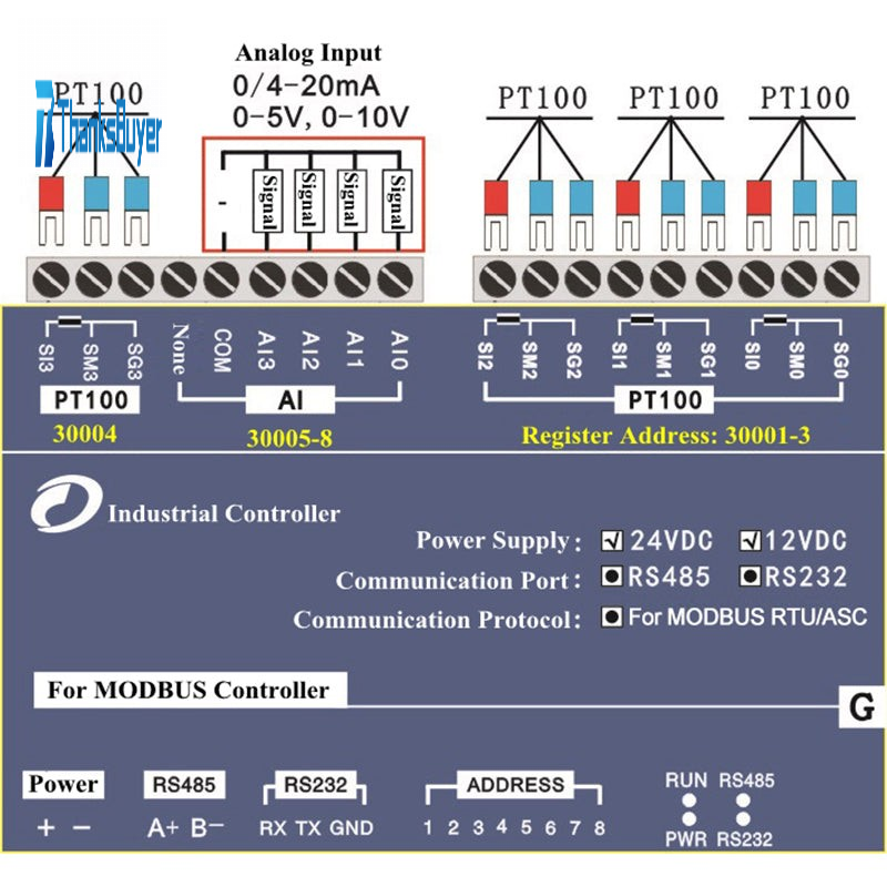 Support RS232, RS485 interface, for Modbus protocol touch screen, text screen.