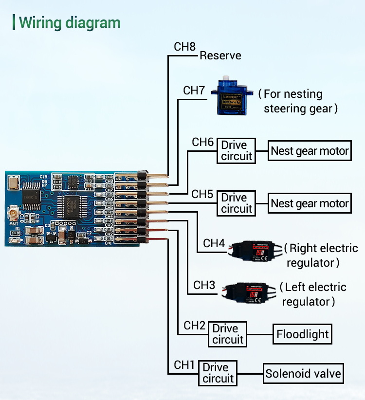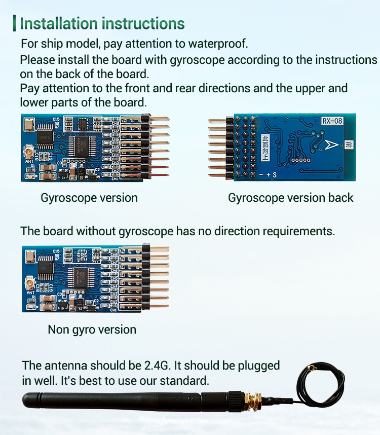 RX-08 2.4G 8CH RC Remote Controller Receiver Set (Gyroscope Version) for Bait Boat Fishing Net Boat