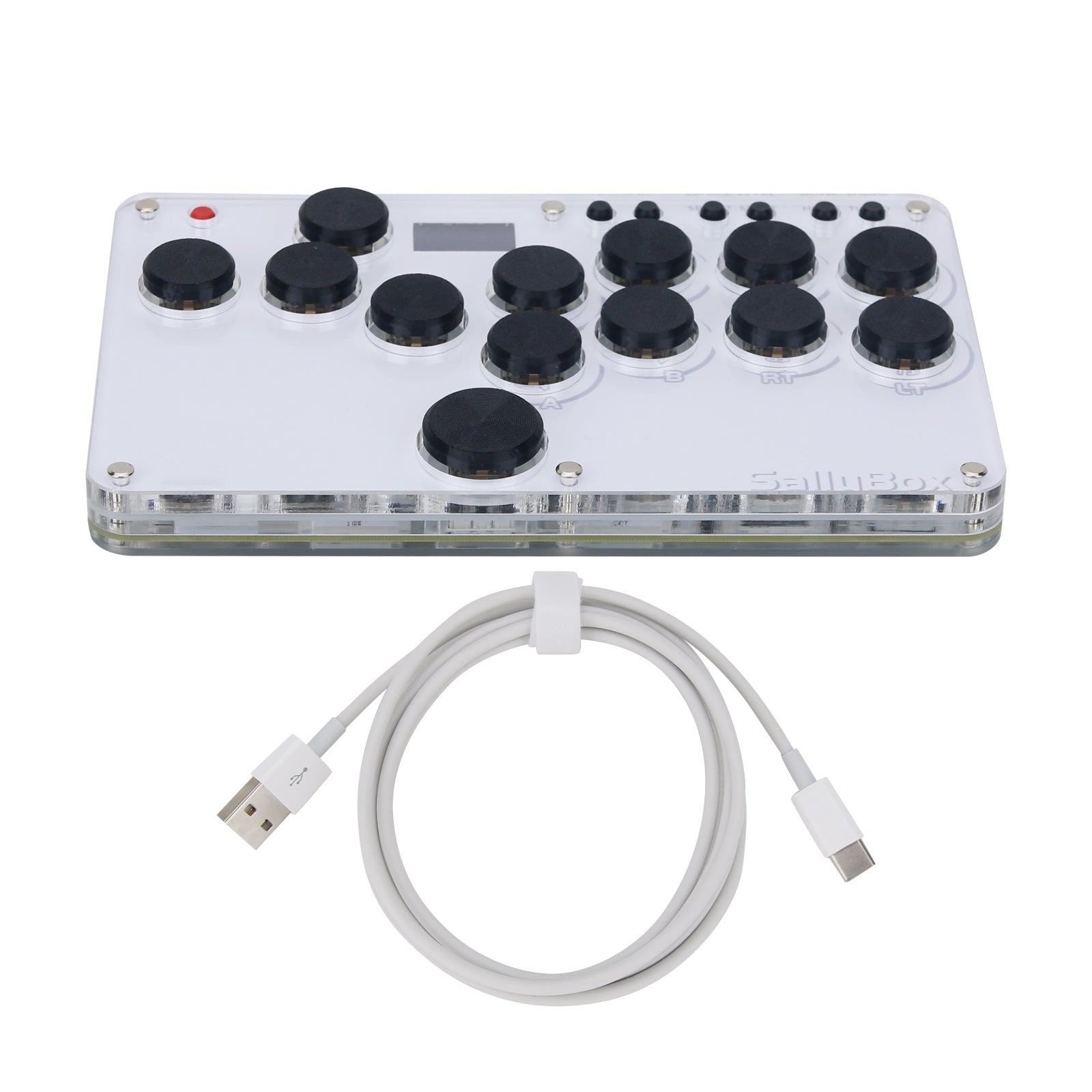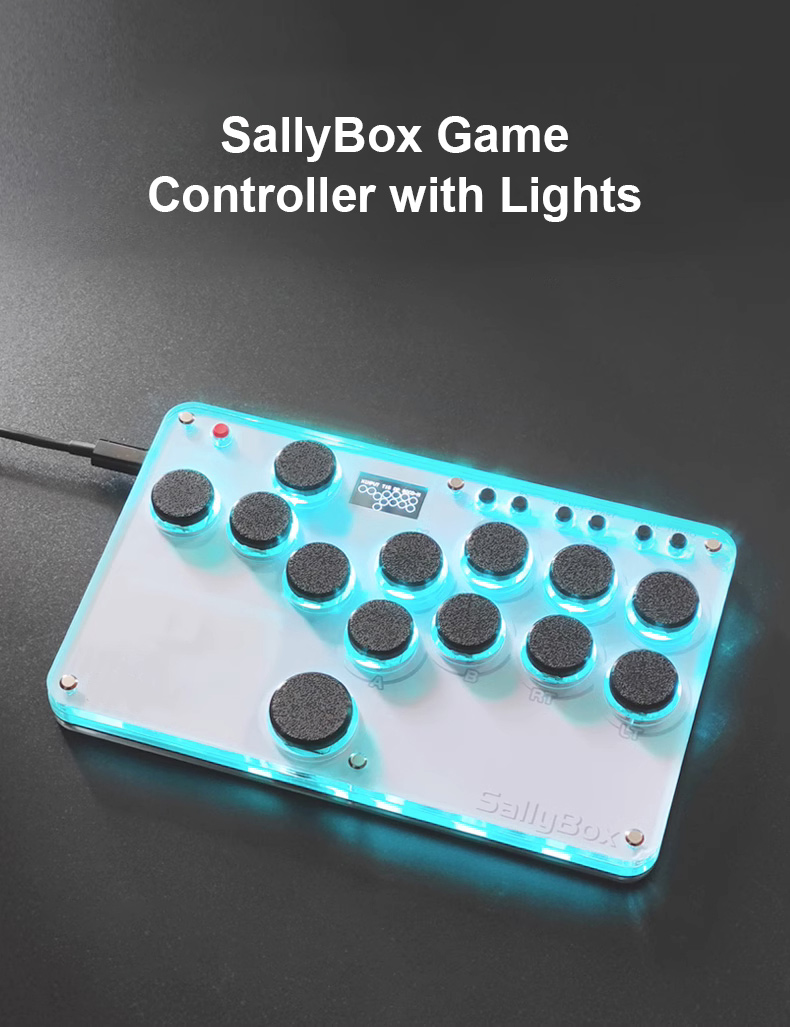 SallyBox Mini Arcade Controller Fight Stick Game Controller w/ RGB LED Switches Key Caps for Hitbox