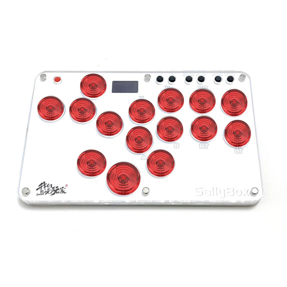 Sallybox Plus 15-Button Arcade Controller Mini Fight Stick with Red Keycaps and Layout for Hitbox