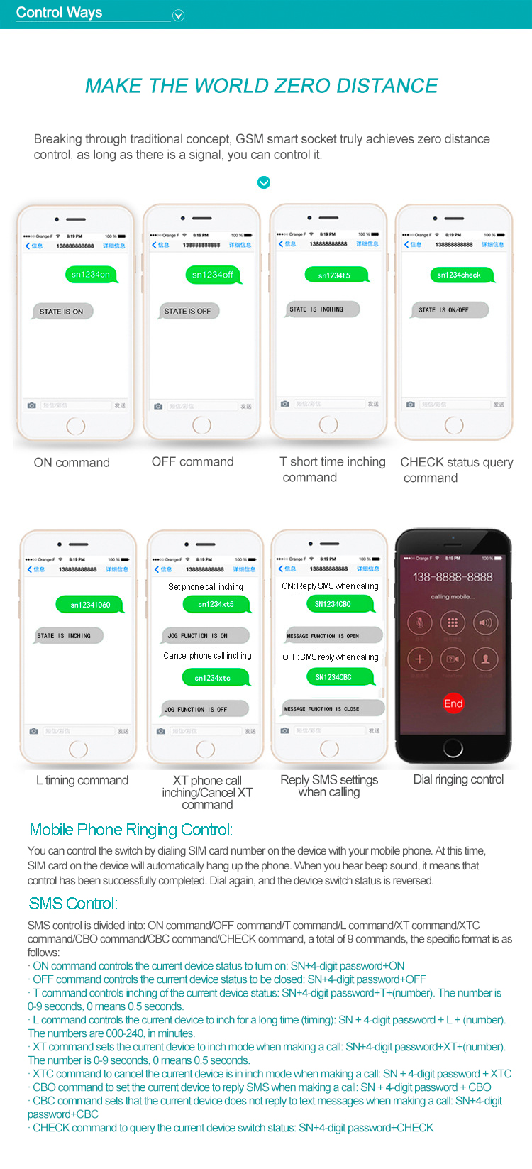 - A good travel companion in the world: you can remotely control electrical equipment at home at any time by SMS, dialing, APP software, or query the status of powered equipment, regardless of distance or time.