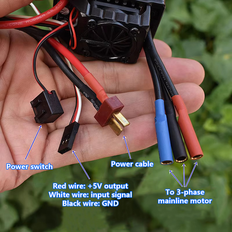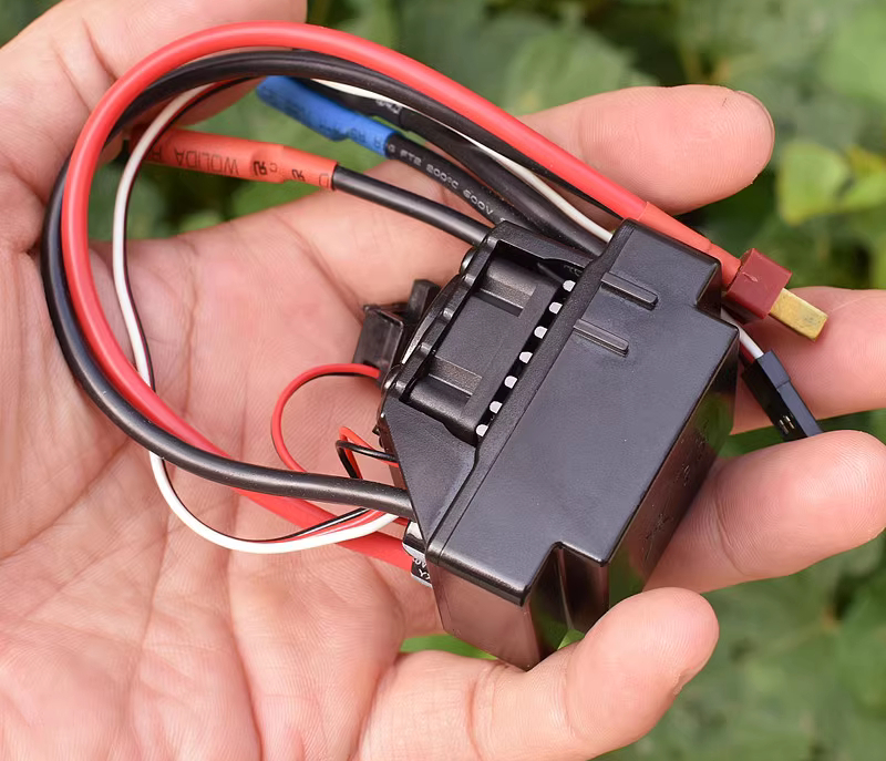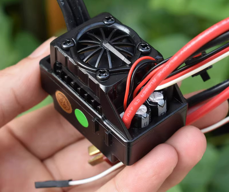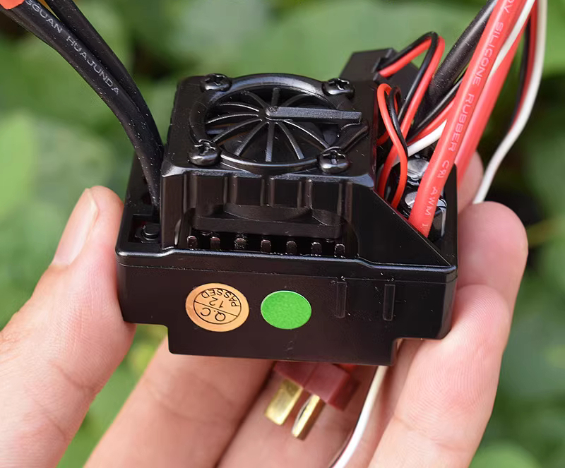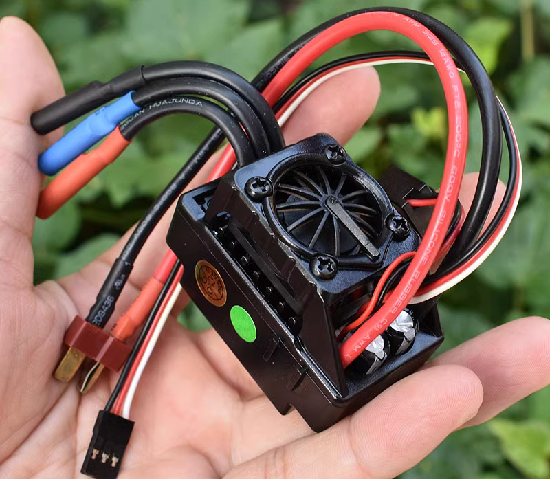 Judging from the 4mm banana plug of the brushless ESC, this is at least a brushless ESC for 1/10 scale model cars, or even a brushless ESC for 1/8 scale model cars.