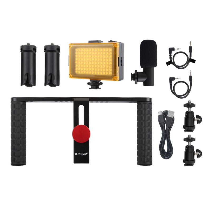 Selfie Smartphone Video Rig with Microphone & Tripod Mount & Cold Shoe Tripod Head PKT3024