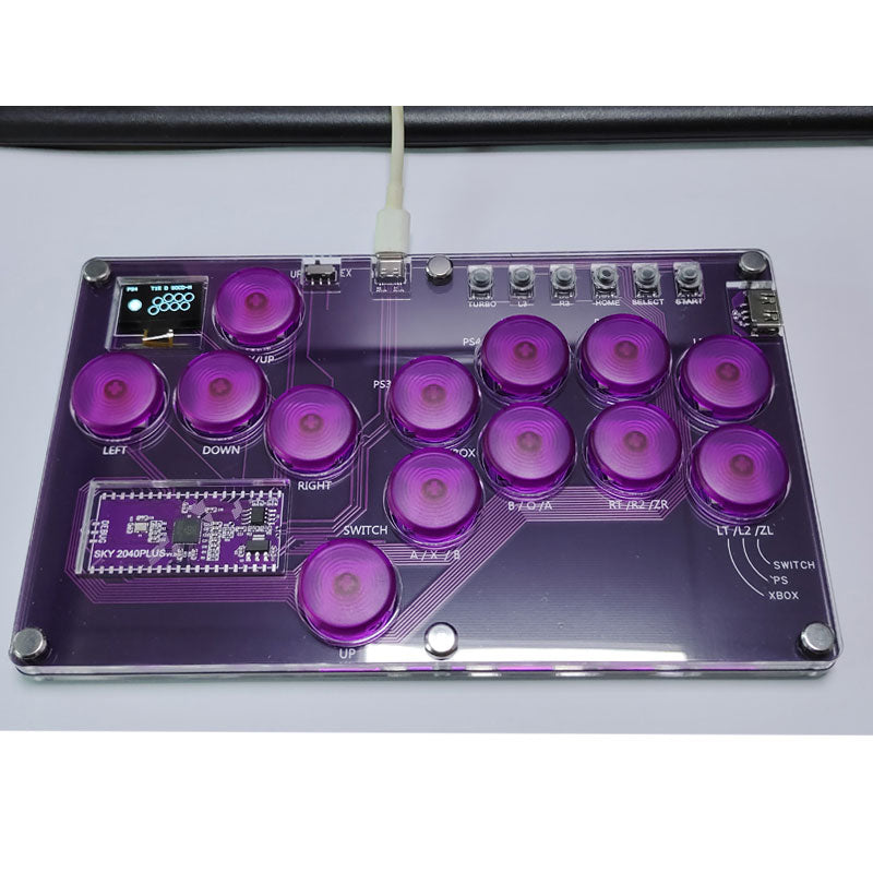 SimPlayer SP2040PLUS 13-Button Hitbox Arcade Stick SOCD 2 UP w/ Screen (Transparent Purple Keycaps)