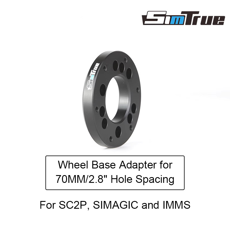 The wheel base adapter can adapt to 70mm/2.8" hole spacing. It is suitable for SC2P, SIMAGIC and IMMS.