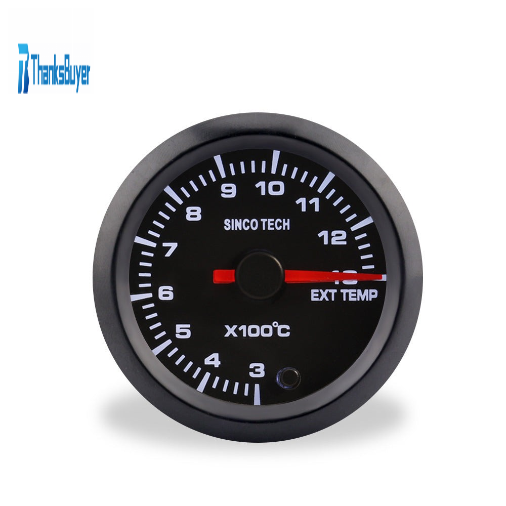 SINCOTECH 2" 7-Color 52mm Car Ext Temp Gauge Exhaust Gas Temp Meter (3~13)x100℃ DO637 for 12V Car