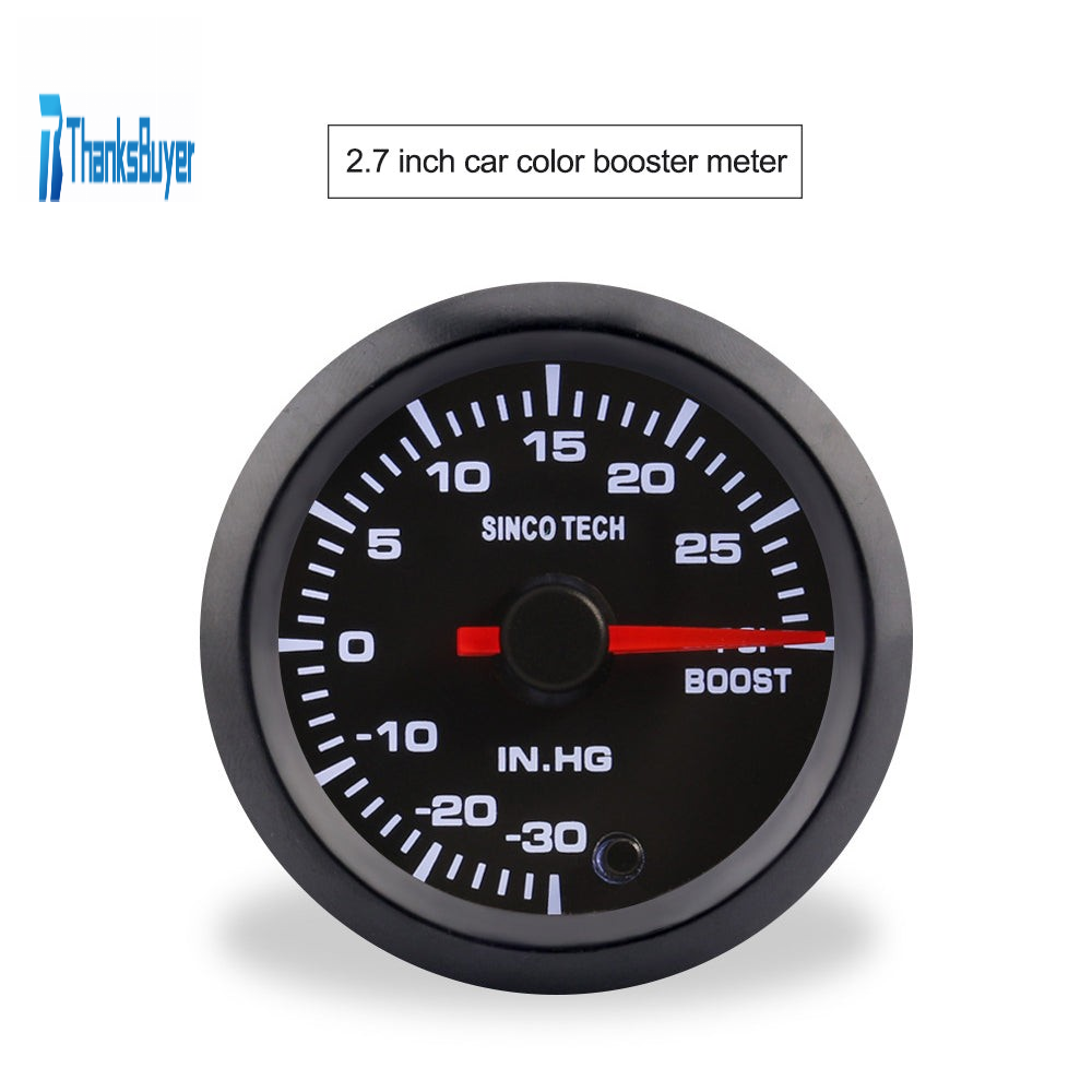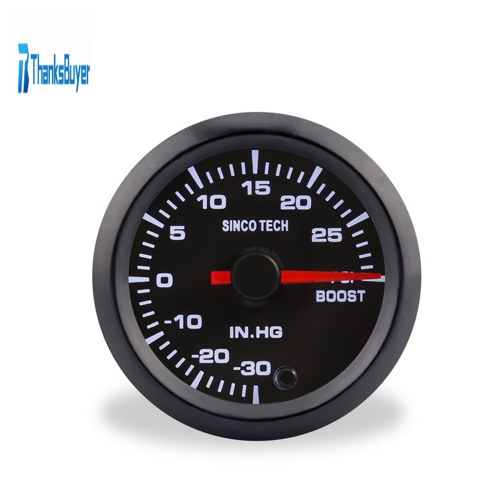 SINCOTECH 2" 7-Color Car Booster Gauge Pointer Turbo Bar Boost 52mm -30~0 INHG/0~30 PSI DO637 for 12V Car