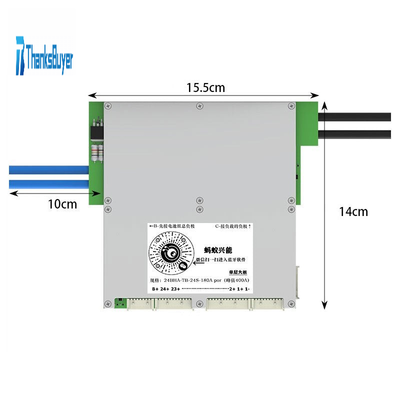 Single-layered 10-24S 180A (Peak 400A) BMS Lithium Battery Protection Board without LCD Display