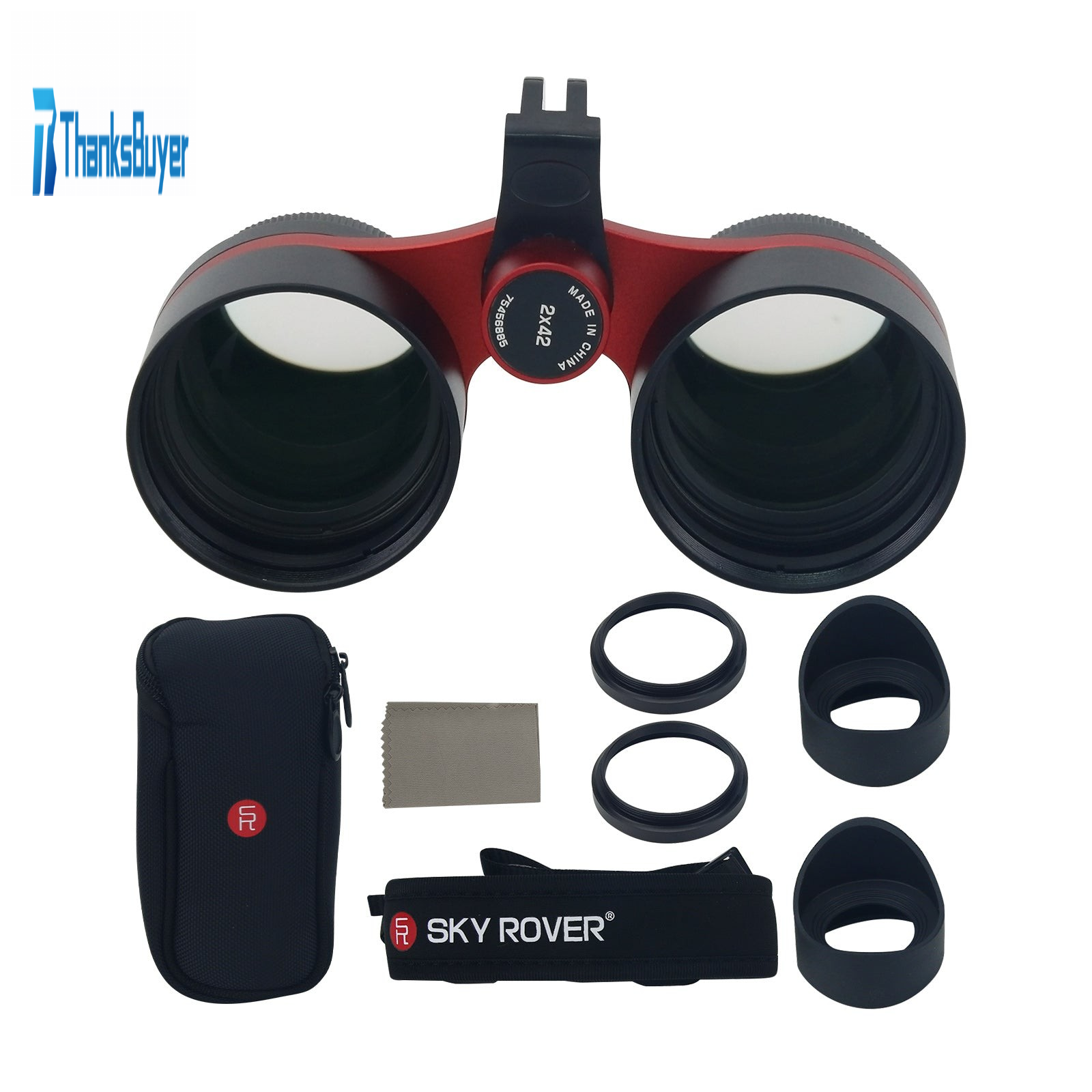 SKY ROVER 2x42 Red Constellation Binocular + 2 Eyepiece Covers 30°FOV Astronomical Telescope for Meteor Shower Observing