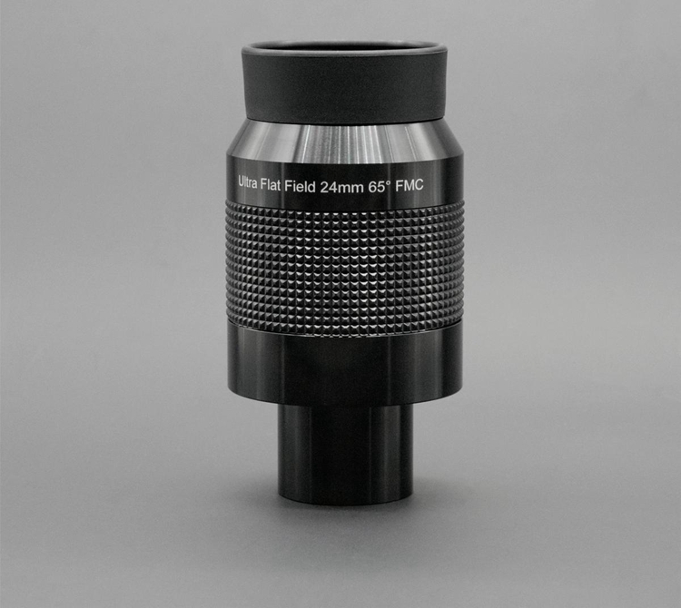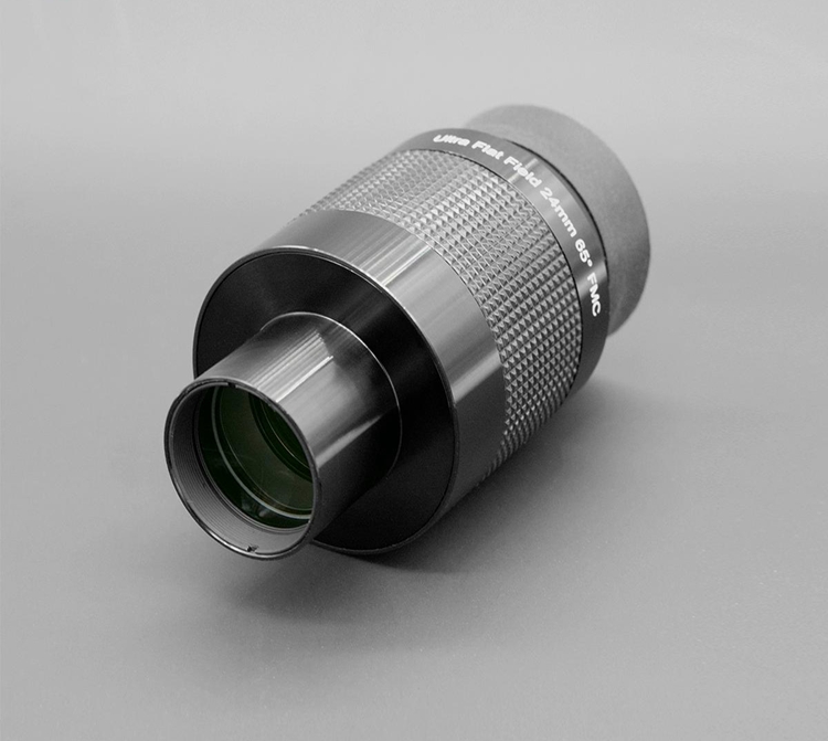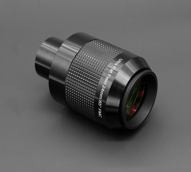 - Ultra Flat Field 24mm eyepiece (hereinafter referred to as UF24 eyepiece) is a newly developed flat field eyepiece of SKY ROVER. It adopts compact mechanical design, provides high-quality optical imaging, can obviously improve the eyepiece field curvature, and control the edge distortion in an ideal range, and can obtain good imaging even on the main mirror with fast focal ratio. UF24 eyepiece has an large eyepiece (35mm) and an exit pupil distance as long as 29mm, so even wearing glasses can also get comfortable observation experience. It is equipped with foldable eye cup, observing close to eyes rarely gets black. Remove the foldable eye mask, there is a M43X0.75 thread. If you need to take photos behind the eyepiece, you can also use this interface for projection photography. If the filter behind the eyepiece is needed, it can also be installed here, which will not affect the look and feel too much.