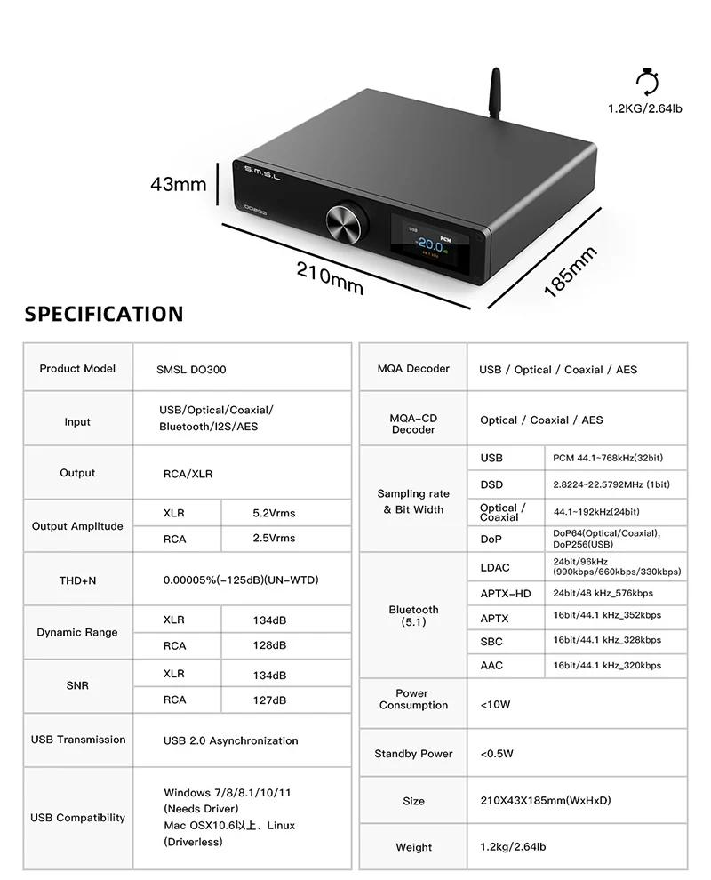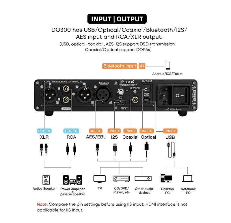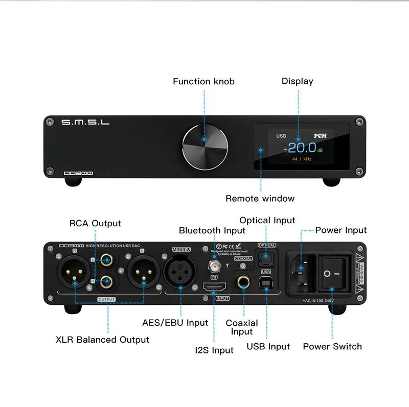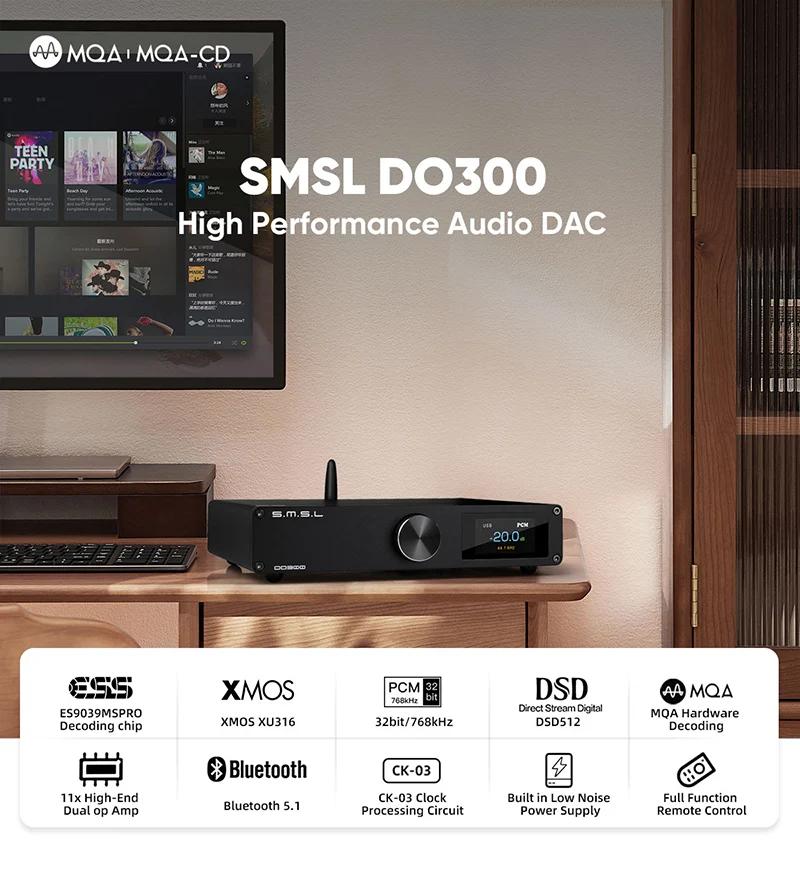 SMSL DO300 ES9039 High Performance Audio Bluetooth Decoder HiFi Enthusiasts DAC with IPS Display Screen for XMOS XU316