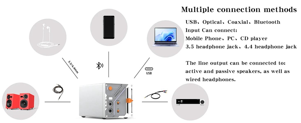 - Input: USB, optical fiber, coaxial, Bluetooth