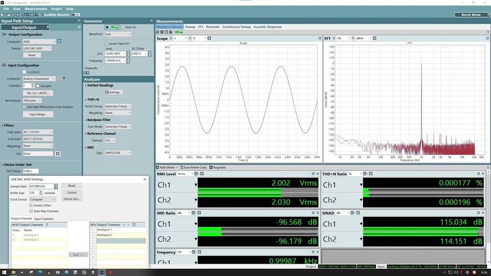 - THD+N (non-weighted): 0.00019% (-114dB)