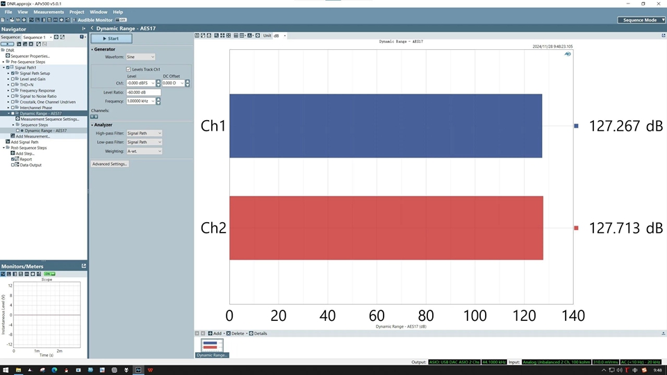 - Dynamic range (non-weighted): 127dB