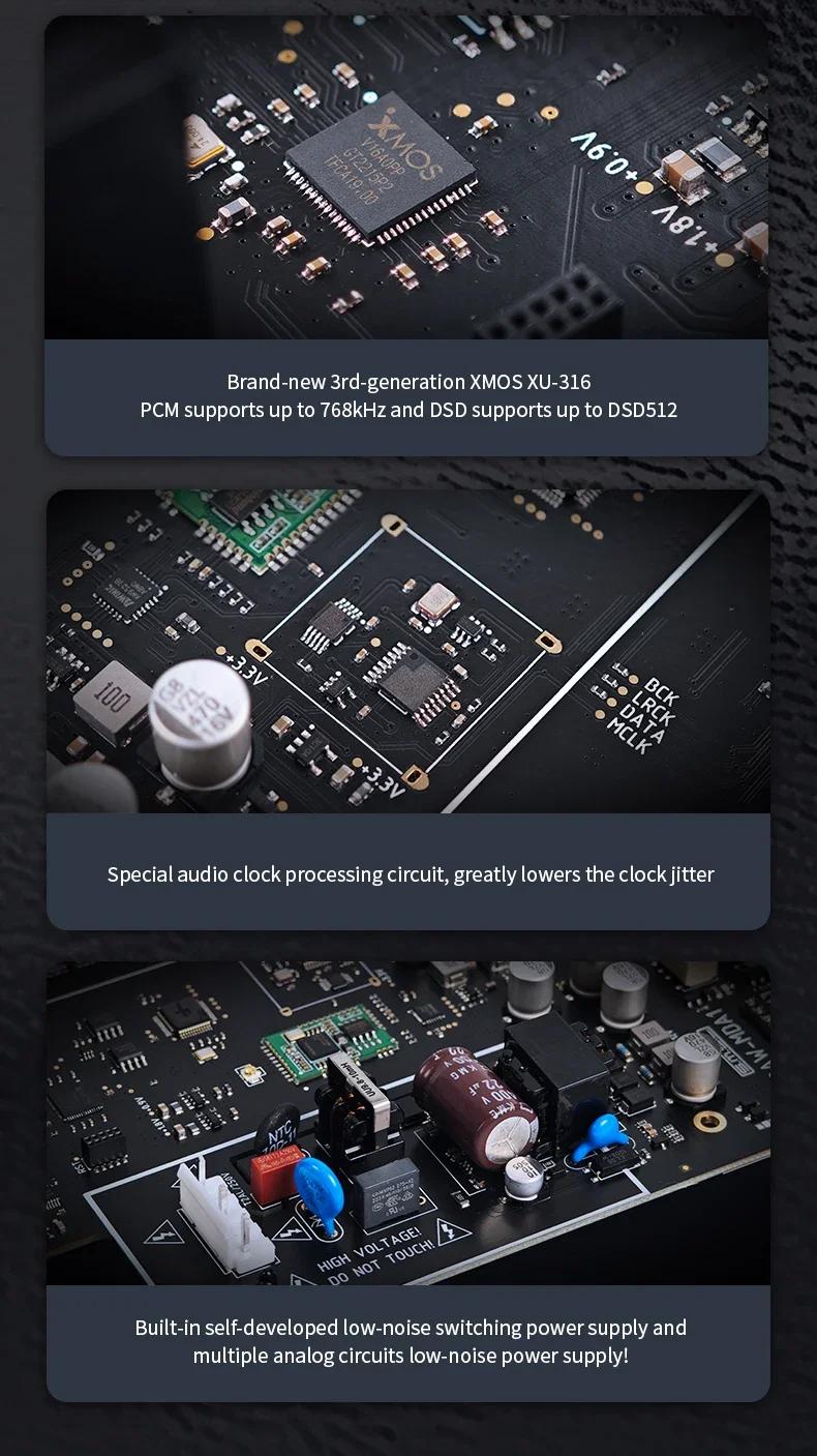 - Output amplitude: 5.2Vrms for balanced, 2.5Vrms for single-ended, 8.2Vrms for headphone amplifier output