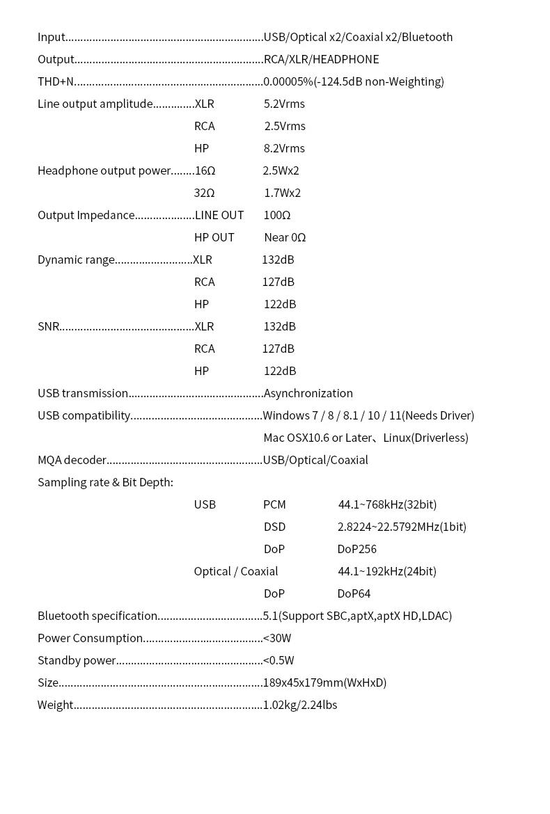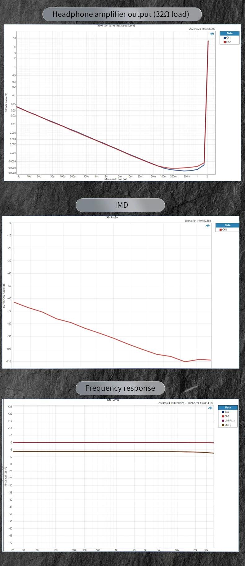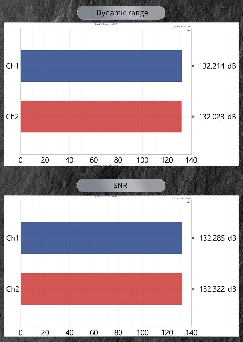 - Dynamic range: 132dB for balanced, 127dB for single-ended, 122dB for headphone amplifier