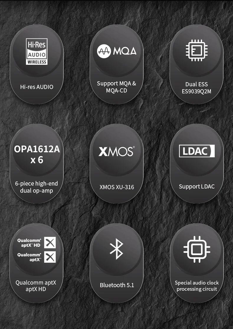 - Bluetooth: 5.1 (support SBC, AAC, aptX, aptX HD, LDAC)