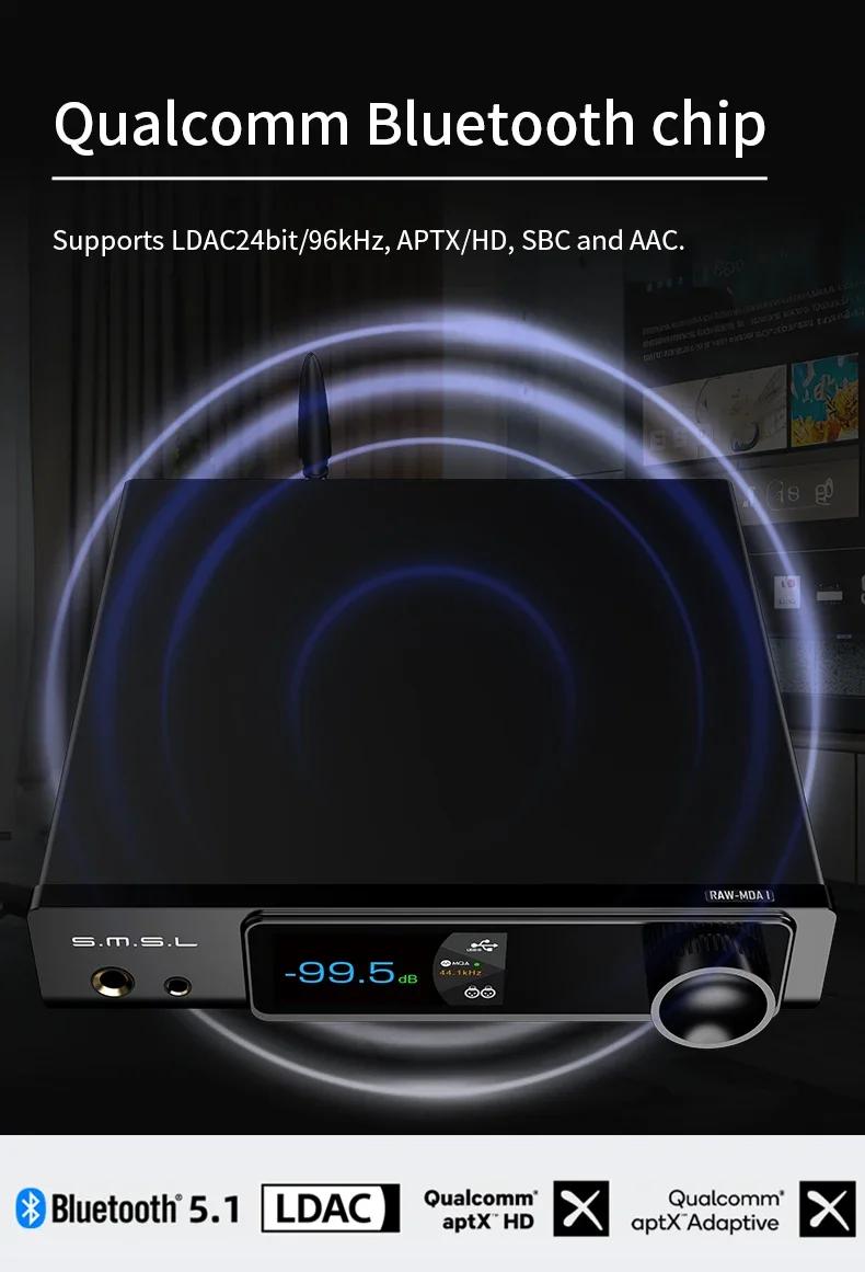SMSL RAW-MDA1 ES9039Q2Mx2 Audio Decoder Bluetooth5.1 for XMOS MQA DAC Headphone Amplifier OPA1612Ax6