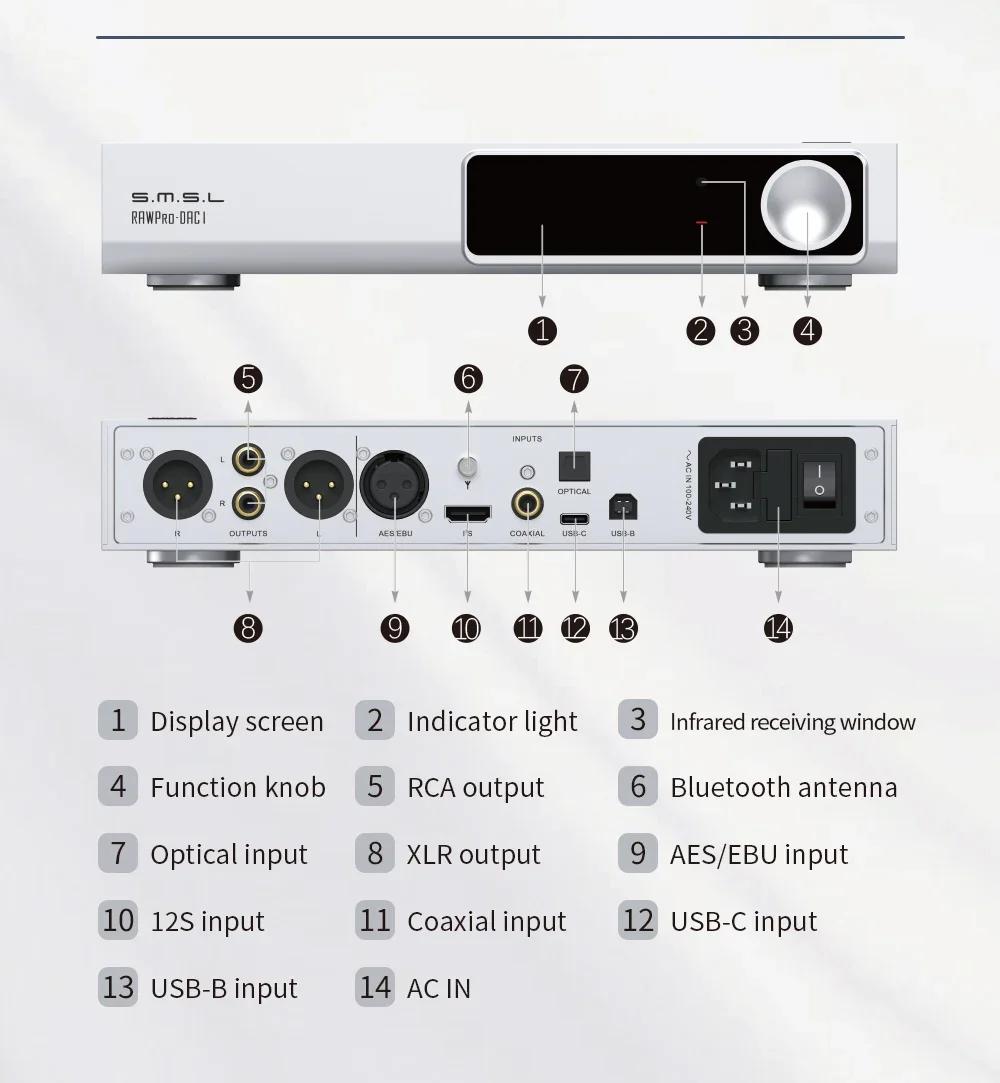 SMSL RAWPRO DAC1 ES9039MSPRO Support for MQA Hardware Decoding Bluetooth5.1 Audio Decoder HiFi DAC
