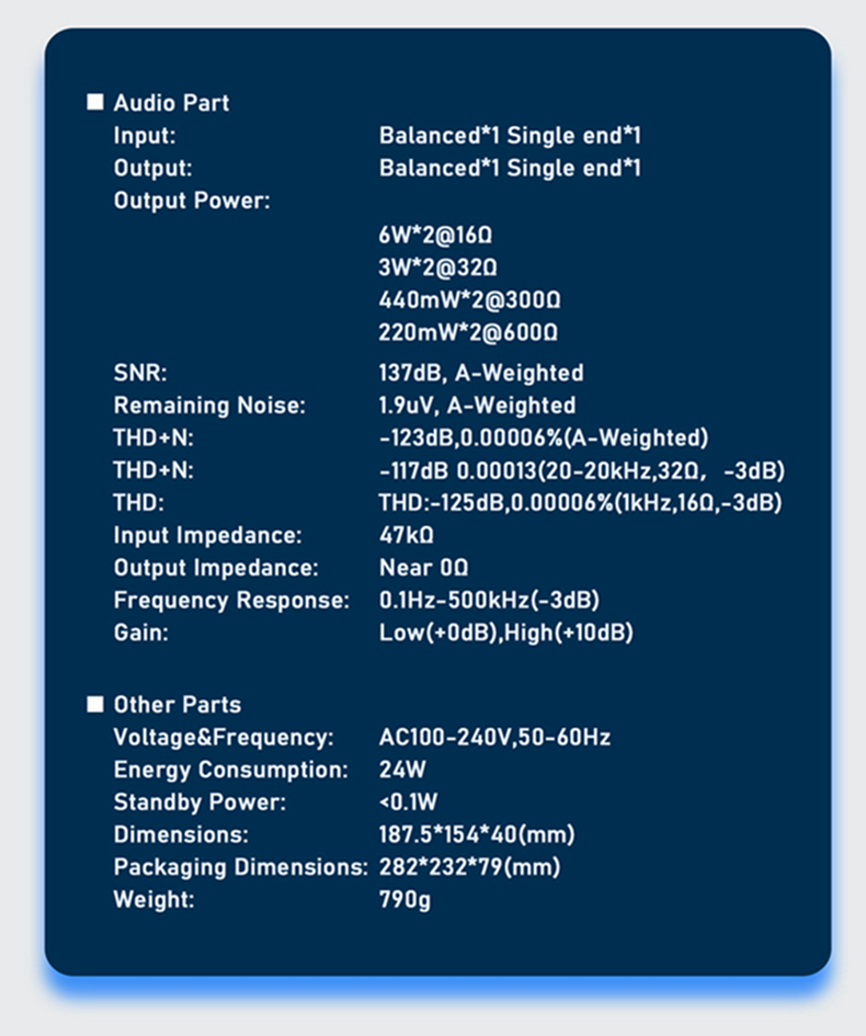 - SMSL patented 24W high-efficiency low-noise power supply is the guarantee of excellent audio performance and output efficiency.