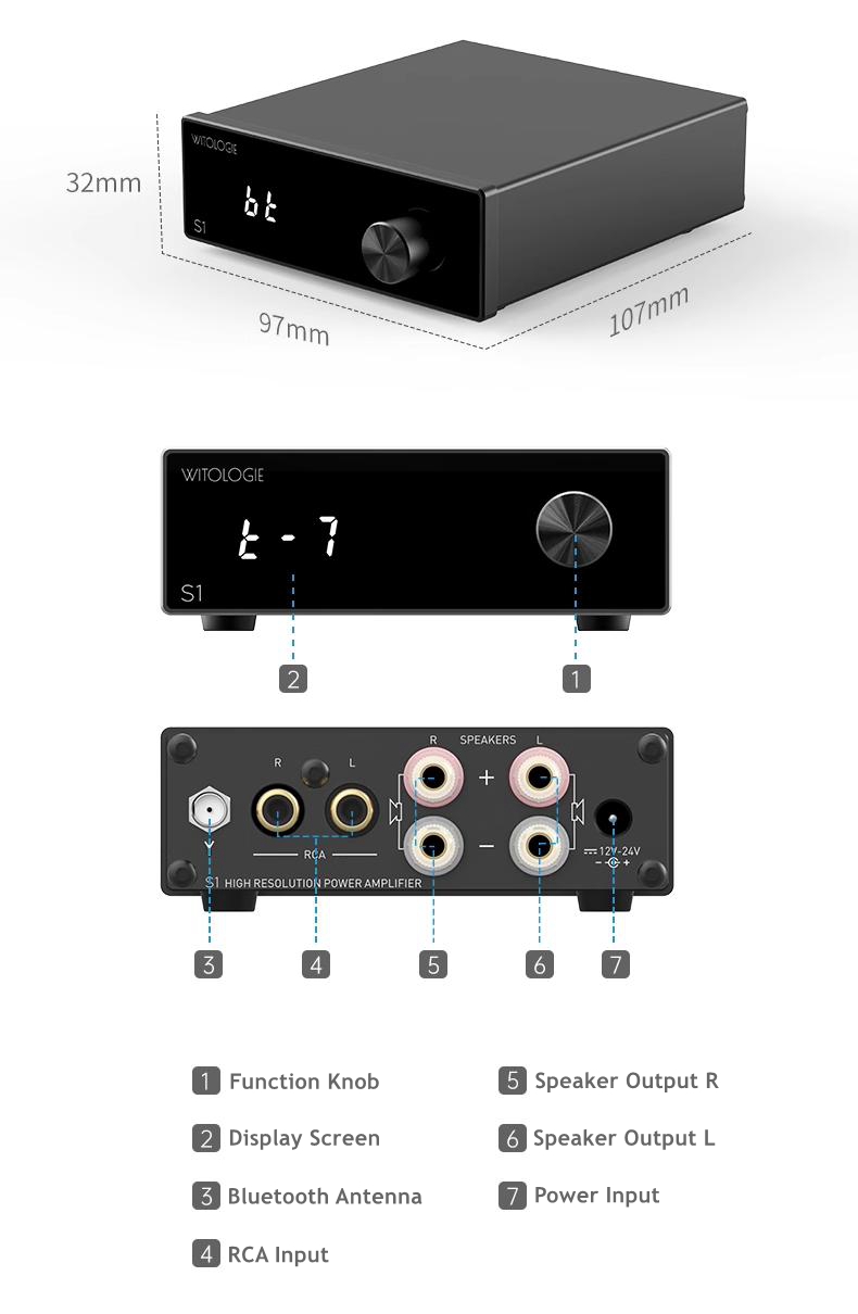 SMSL WITOLOGIE S1 Dual TPA3116 50Wx2 High Power Digital Power Amplifier 220V Bluetooth5.0 with 24V Power Adapter