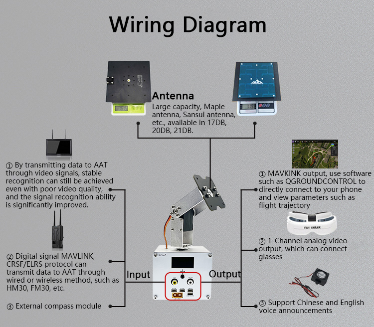 - SN-AAT PLUS is an upgraded version of SN-AAT's automatic tracking PTZ, which aims the antenna at the direction of the aircraft in real-time based on the obtained aircraft position information, and outputs its information through the MAVLINK protocol, screen, or voice module; At the same time, it supports MAVLINK and CRSF (ELRS) protocol inputs to achieve digital mode tracking. Compared to the previous generation AAT, the data recognition rate improves by more than 100% in cases of significant video image interference.