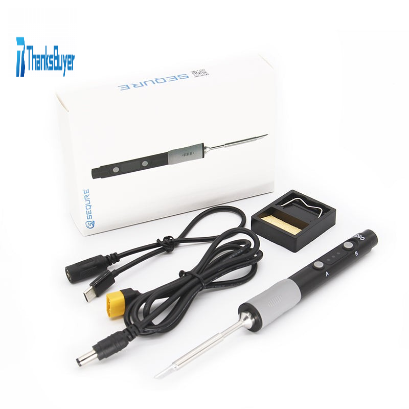 SQ-D60 is equipped with SQ-001 soldering iron tip and uses TYPE-C power supply. It has humanized functions such as automatic sleep shutdown, induction wake-up, etc. It is a portable intelligent constant temperature electric iron. It is easy to use, temperature rises quickly and steadily. Round and compact body shows simplicity and luxury. It is an indispensable welding tool for electronic players.