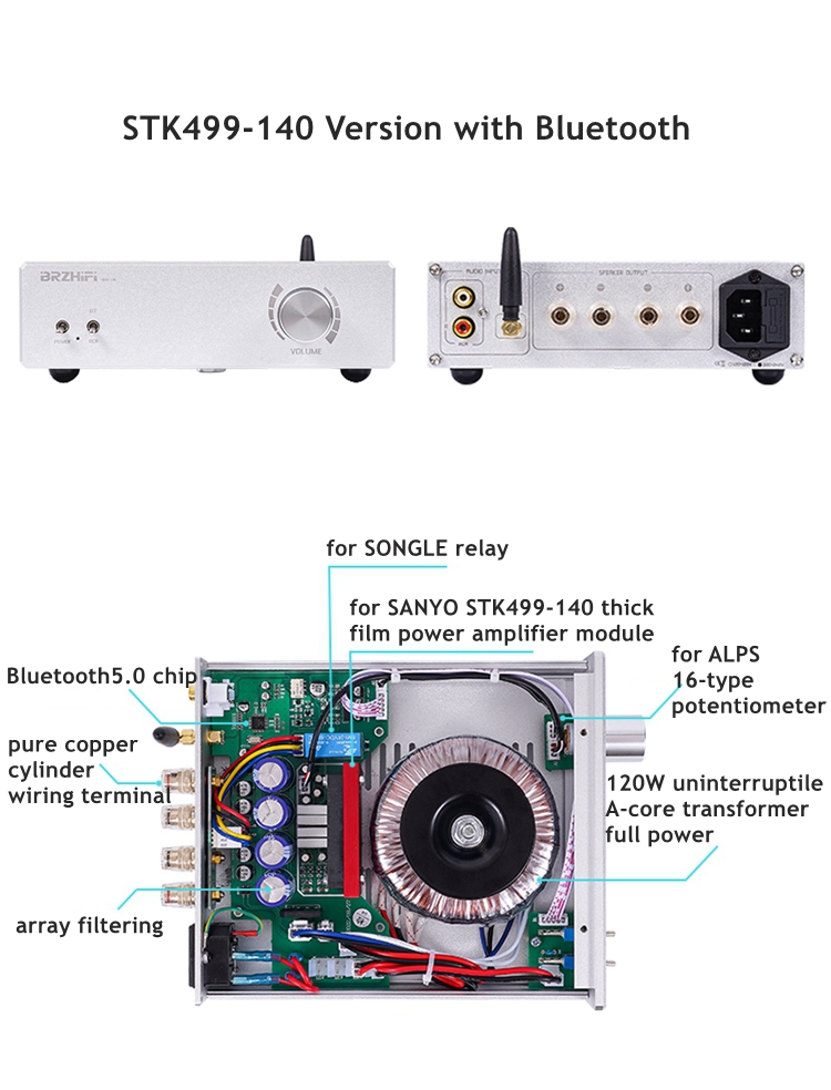 STK499-140 Bluetooth5.0 Version HiFi Power Amplifier 25W+25W Dual Channel Lossless Audio Amplifier