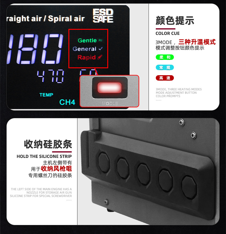 - The left side of the host has a nozzle for storage air gun silicon strip for special screwdriver.