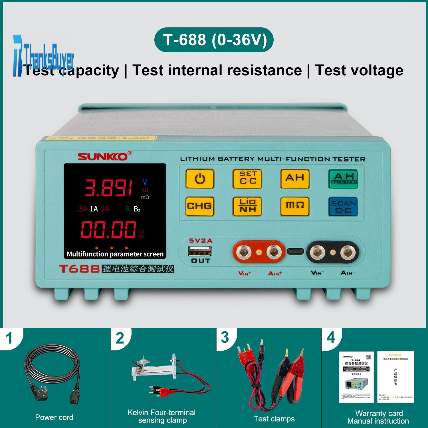T-688 0-36V Lithium Battery Group Multi-function Tester for Internal Resistance/Voltage/Capacity Testing