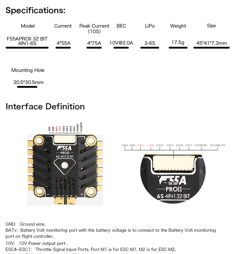 T-Motor Brushless ESC F55A ProII 6S 4-In-1 32Bit ESC with LED For FPV Racing Drones