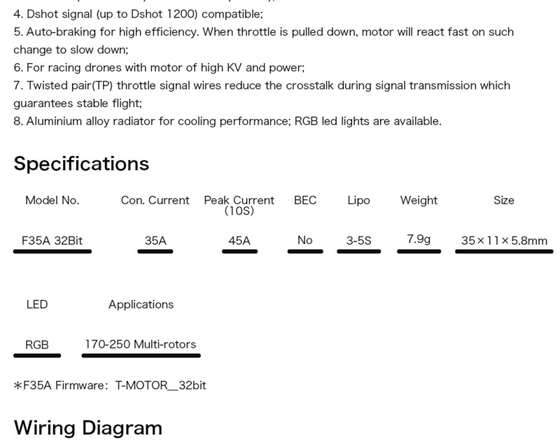 T-Motor ESC F35A 3-5S 32Bit 35A Brushless ESC For FPV RACING Frame