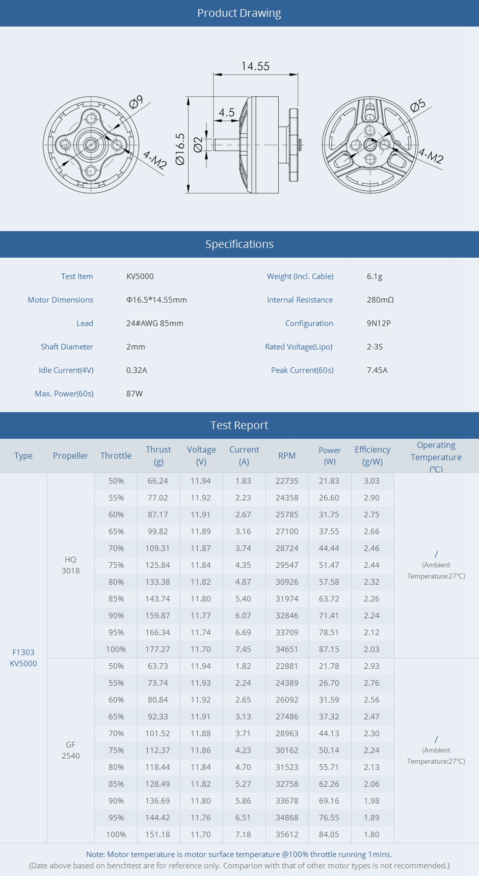 T-Motor F1303 KV5000 Brushless Motor FPV Motor 2-3S Drone Motor Suitable For 3" Toothpick Drones