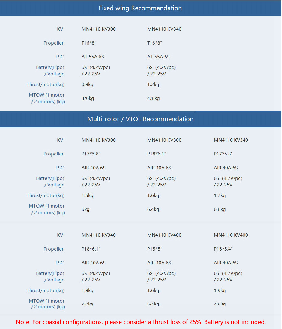 T-Motor MN4110 KV340 Brushless Motor RC Drone Motor Perfect for Multirotor VTOL Fixed-Wind Drone