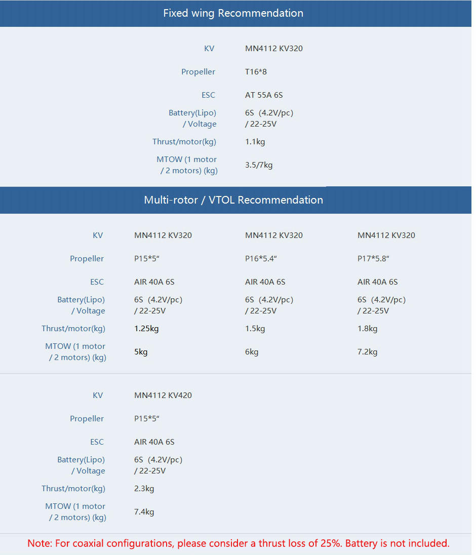 T-Motor MN4112 KV320 RC Drone Motor Brushless Motor Perfect for Multirotor VTOL Fixed-Wind Drone