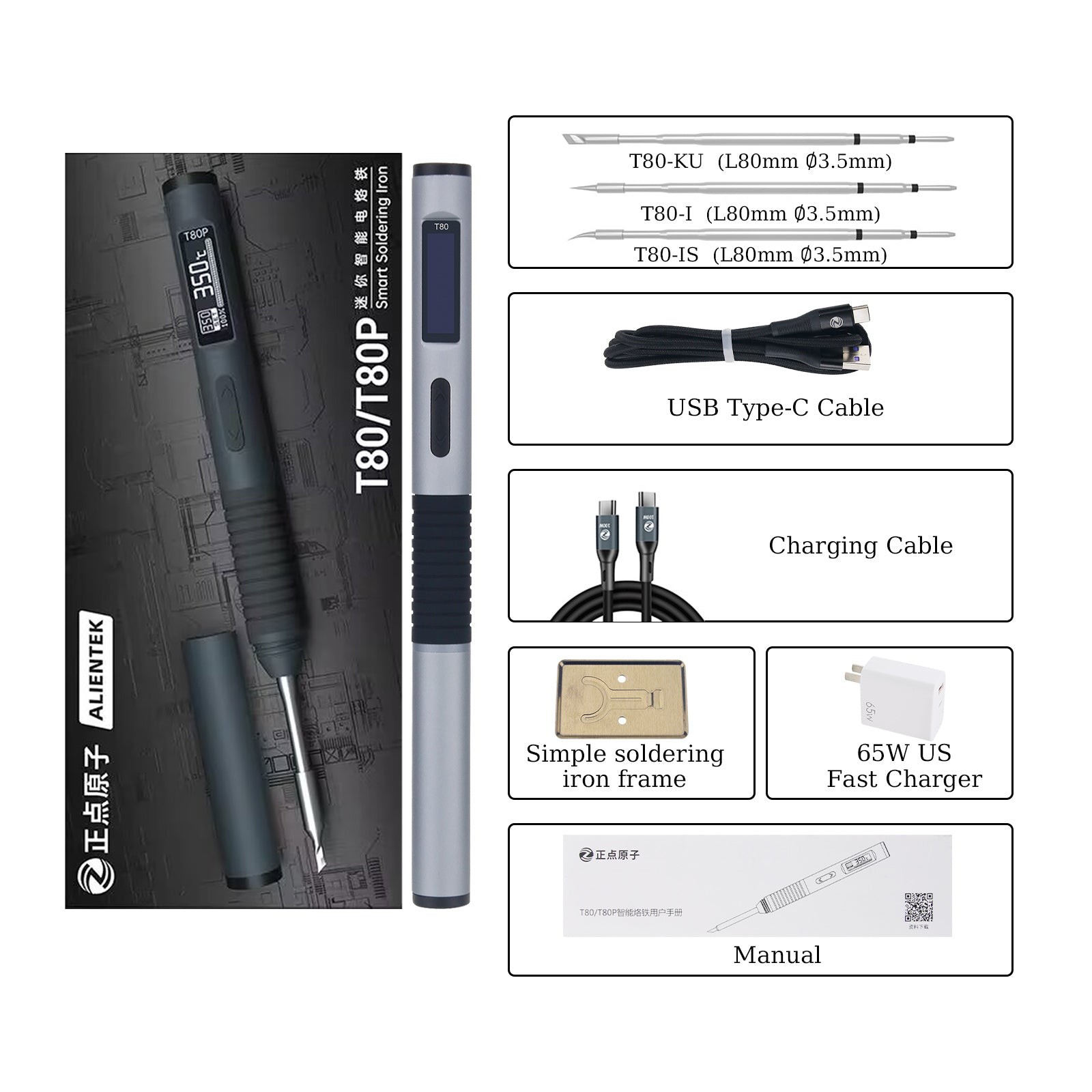 T80 Smart Electric Soldering Iron 100W Portable Constant Welding Station T80-KU/I/IS Soldering Tip with Power Adapter