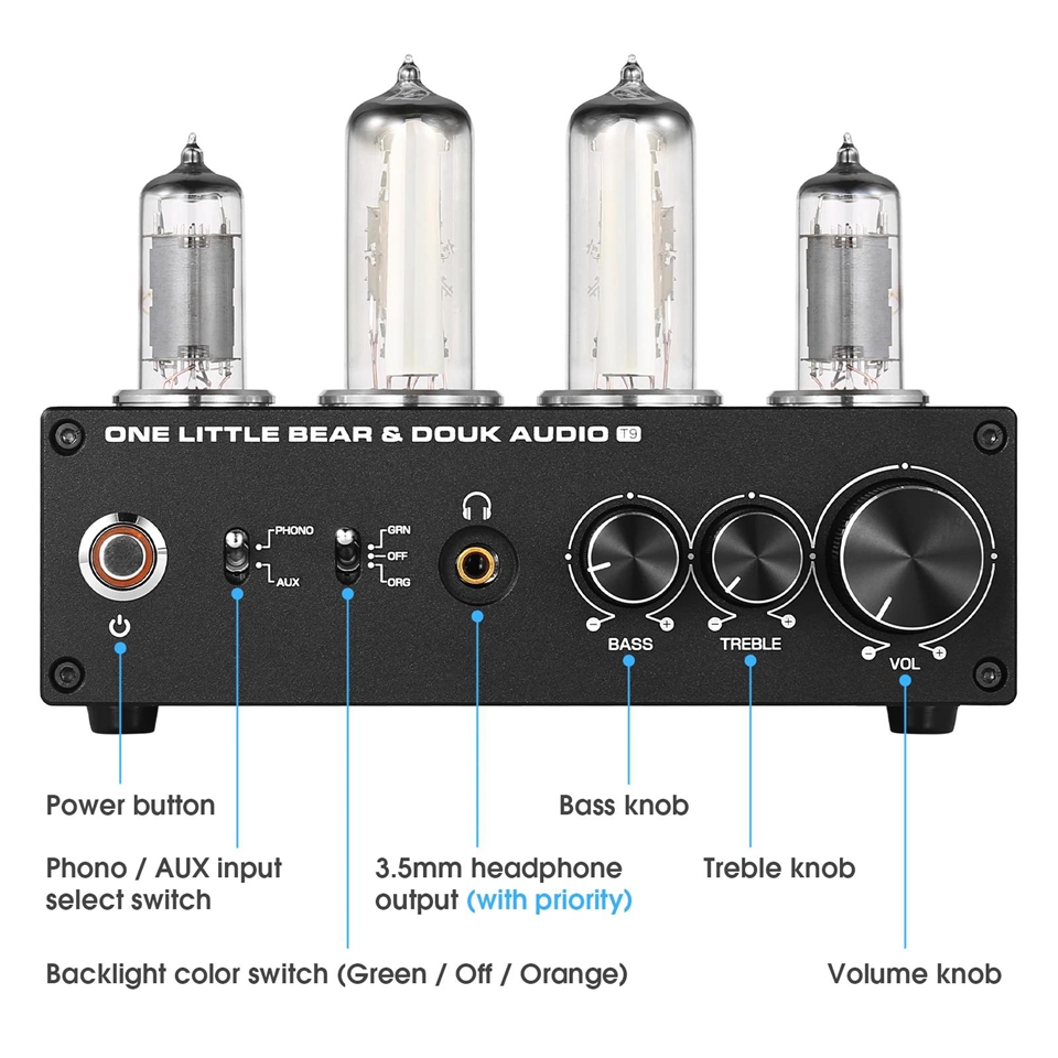 - Vintage vacuum tubes to provide double enjoyments: add magic eye 6E2 tubes to show the signal level dynamically, the color is pure with high brightness, also with switchable cold green and warm orange backlights, wonderful visual feast can be attained; default 6A2 tubes to improves everything associated with music, sounds warm and natural, full and mellow, amazing auditory carnival for your ears.