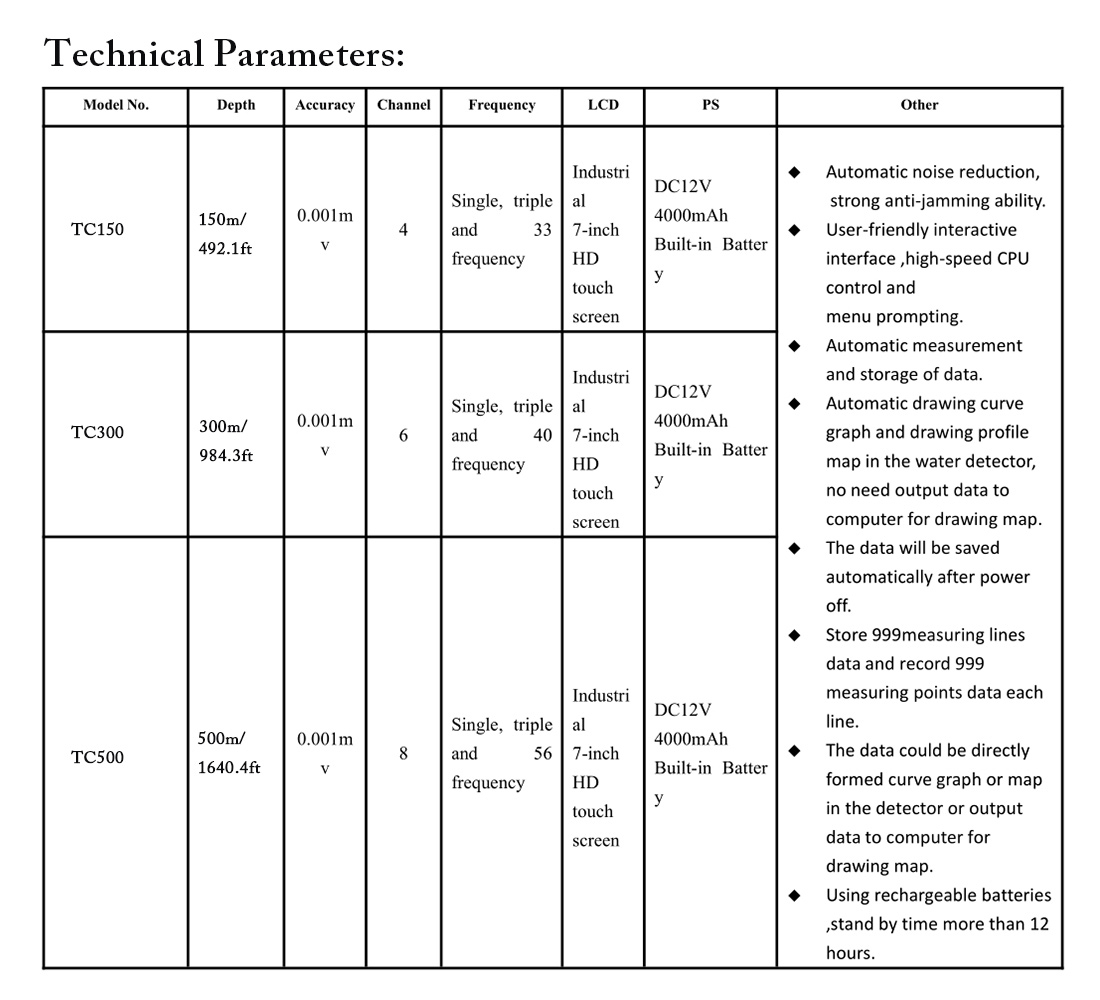 - Convenient to carry: Without heavy power supply, it uses low frequency signals in earth natural electric field as signal source, and the complete set weight is less than 2kgs so easy to carry.