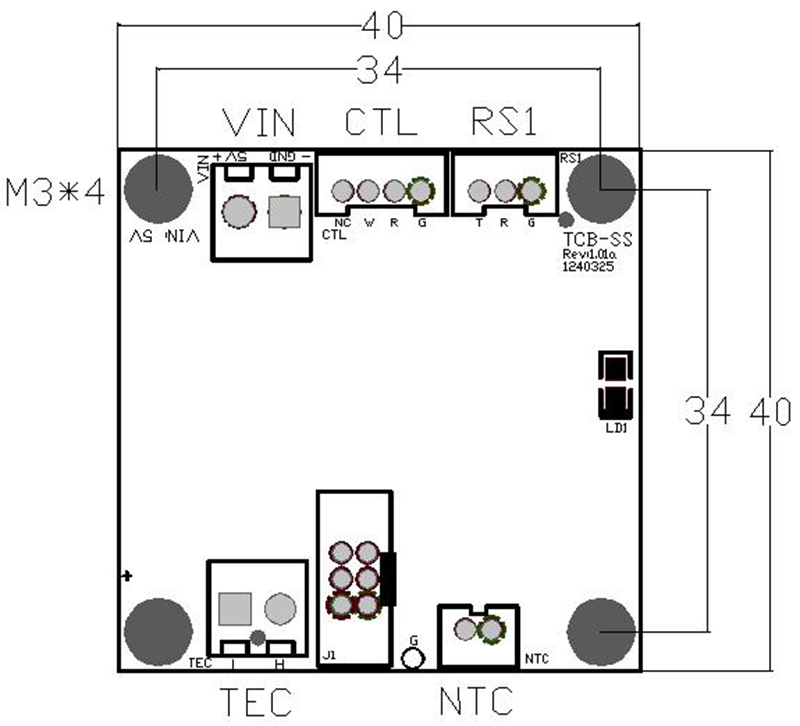 - As shown in the following figure, the connection method of the temperature control board is similar, that is, connecting the probe (the two feet of the probe have no direction), connecting the TEC (the TEC has direction, and there is a description of the connection method), connecting the wires, note that the wires must not be connected back to the serial port control line.