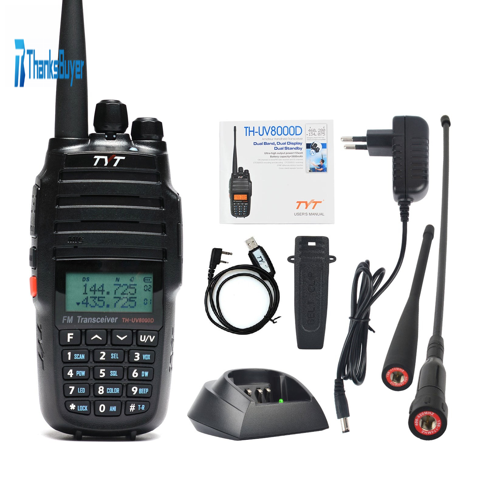TH-UV8000D 10W 10KM VHF UHF Walkie Talkie Dual Band Radio Handheld Transceiver w/ Programming Cable