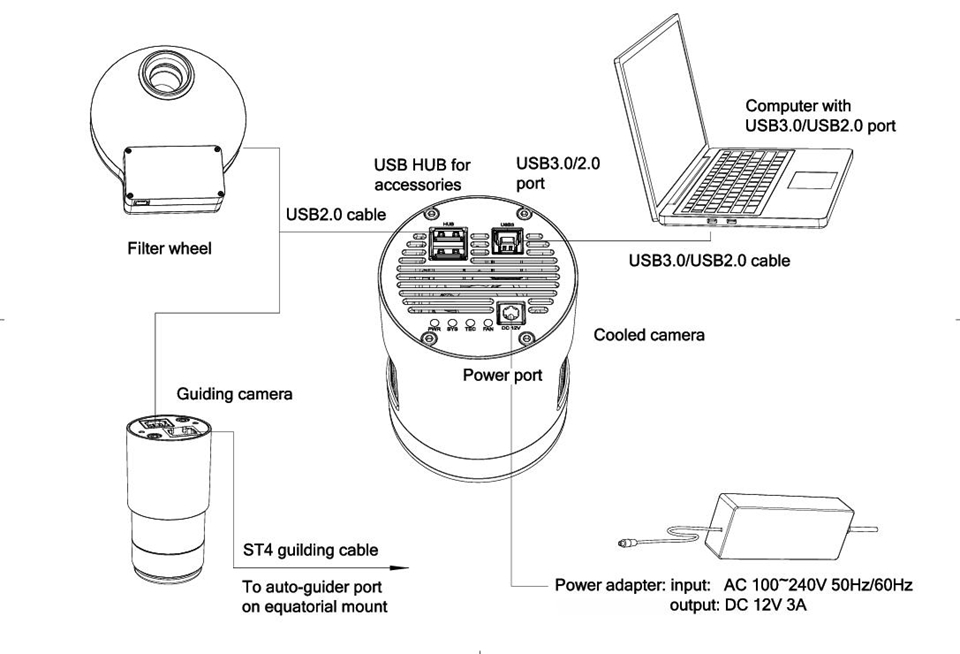 ToupTek ATR585M IMX585 Mono Camera Astronomical Research-grade Deep Space Cooling Camera 3840x2160 1/1.2” Frame with Black Shell
