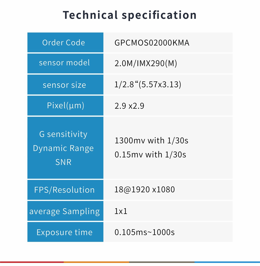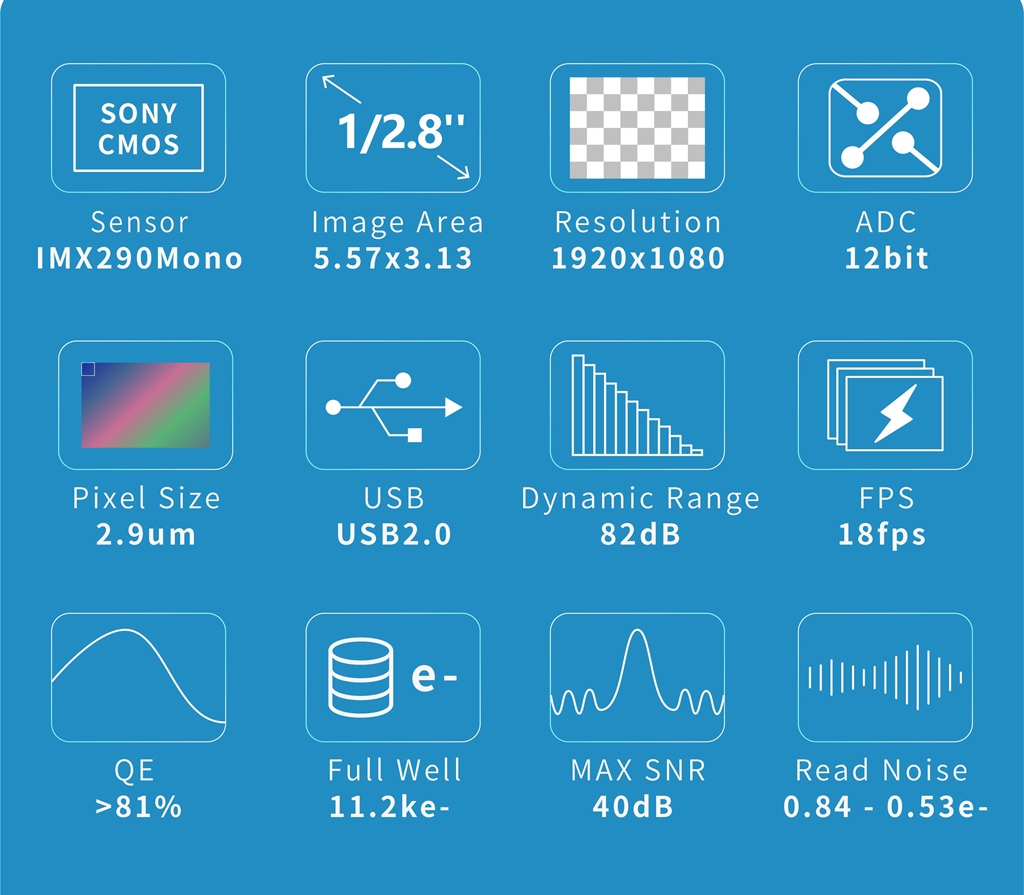 ToupTek Blue GPCMOS02000KMA USB2.0 IMX290 Mono Astronomical Guiding Camera 1/2.8-inch Optical Format