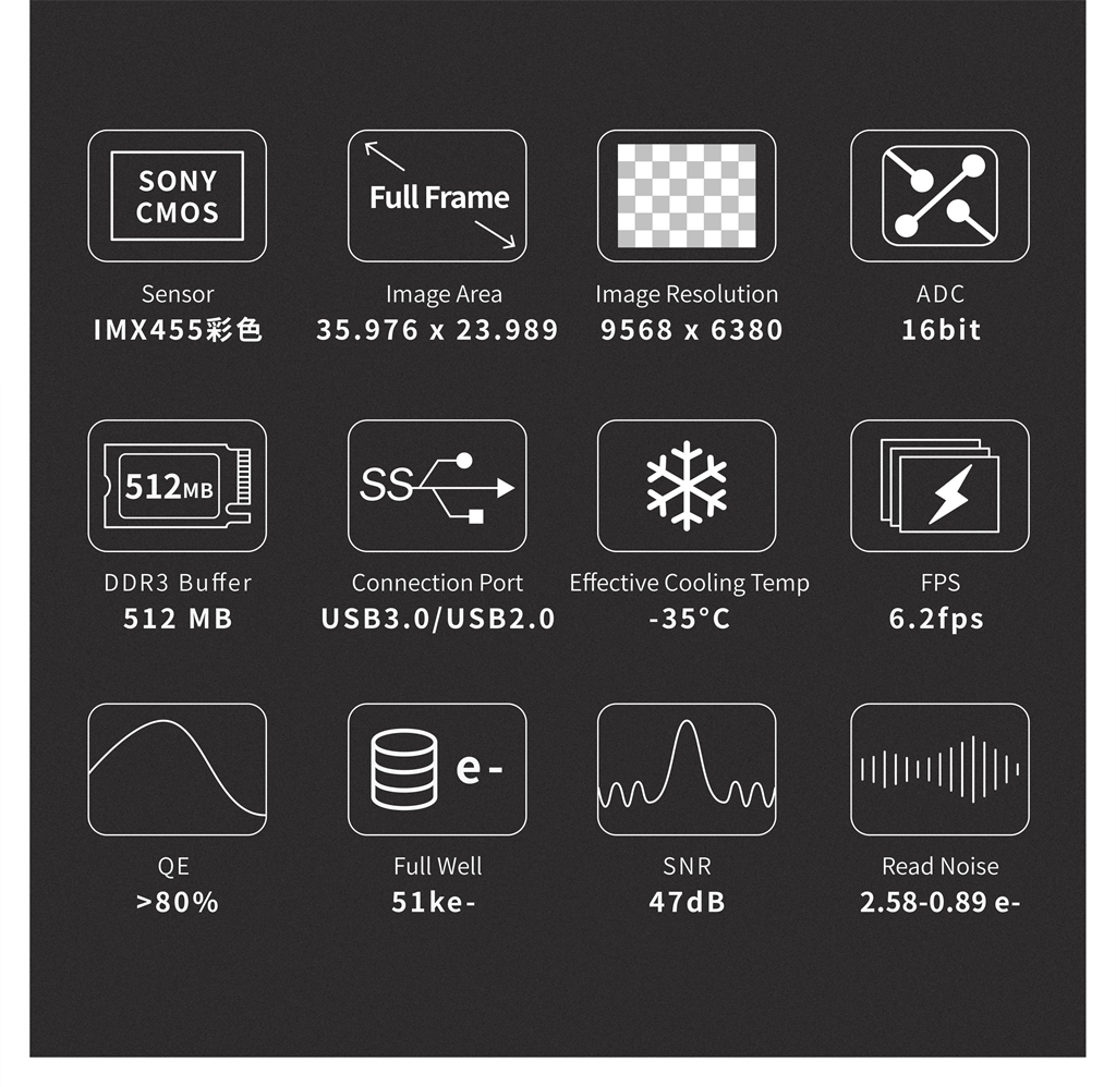 ToupTek SkyEye62AC Astronomical IMX455 Colorful Camera Full Frame TEC Cooling for Deepsky Photography