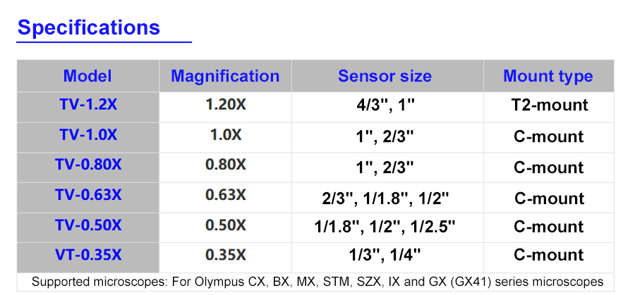 TV-0.50X Camera C Mount Adapter Phototube to C-Mount TV Adapter for Olympus Trinocular Microscopes