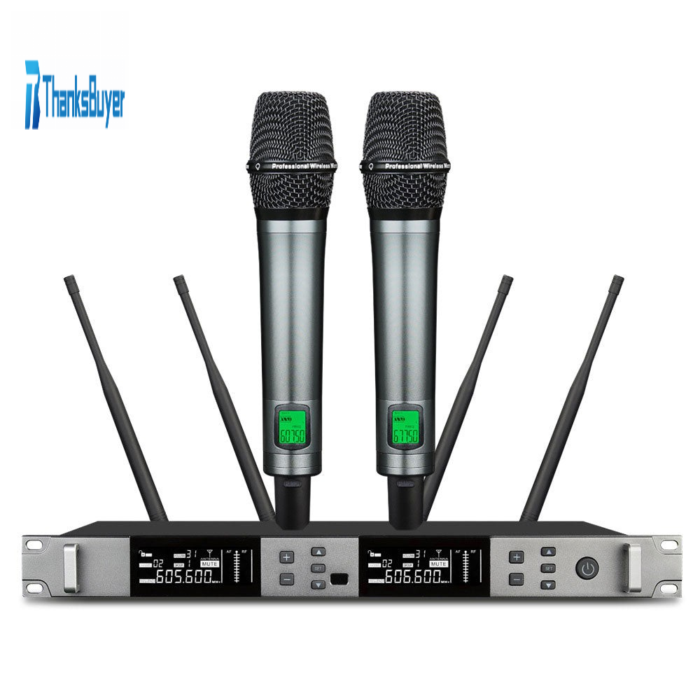 - Professional-grade wireless microphones adopt true diversity frequency modulation technology