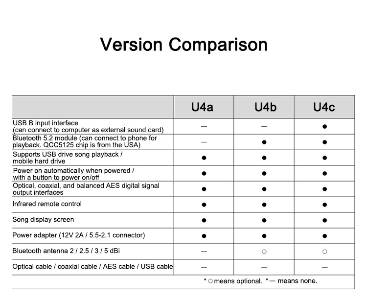 * Main Functions: USB drive, Bluetooth, computer-to-optical & coaxial conversion