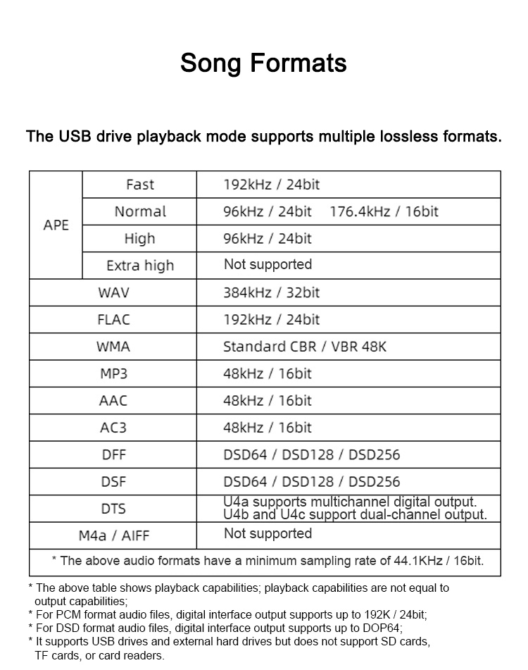 * USB Drive Specifications: DSD64 / PCM 192K 24-bit