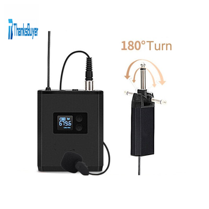 UHF Wireless Microphone System Lavalier Lapel Microphone with Receiver Bodypack Transmitter Black