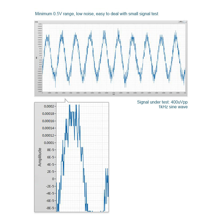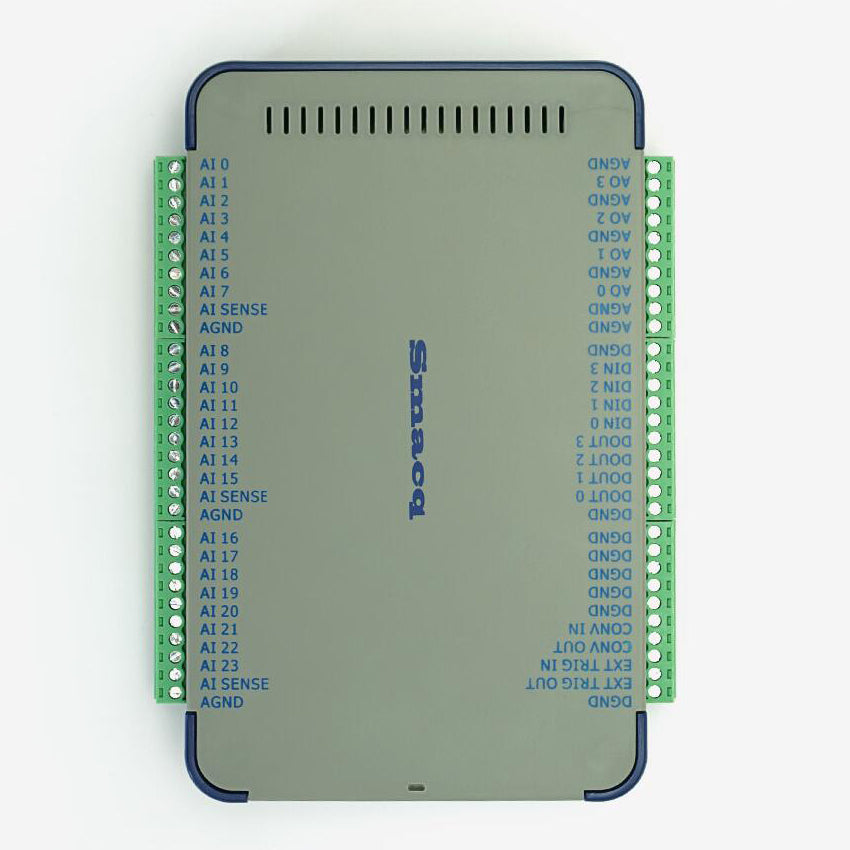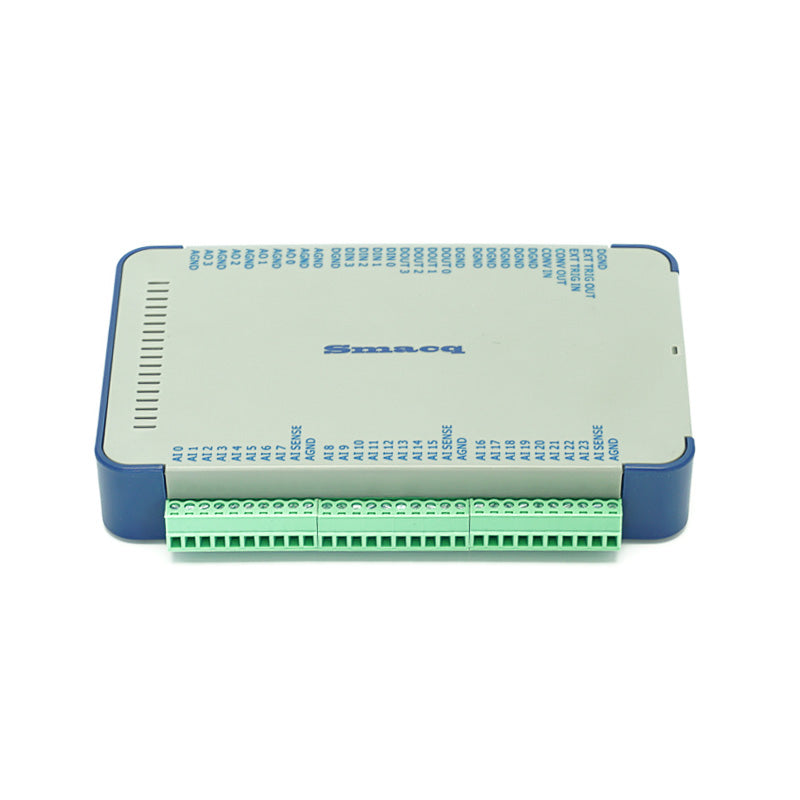 It is a multifunctional data acquisition card based on the high-speed USB2.0 interface, which can be used for continuous high-speed signal acquisition and continuous high-speed output of control signals when connected to a computer. The data acquisition card can measure analog and digital signals, and record measurement data continuously and uninterruptedly to a computer hard disk; it can also output digital signals, can output periodic repetitive signals, or high-speed output of uninterrupted non-repetitive signals controlled by the computer . It supports use in operating system for Windows, provides a standard dynamic link library, and supports for mainstream development languages such as VC++, VB, C#, LabVIEW, and Matlab.
